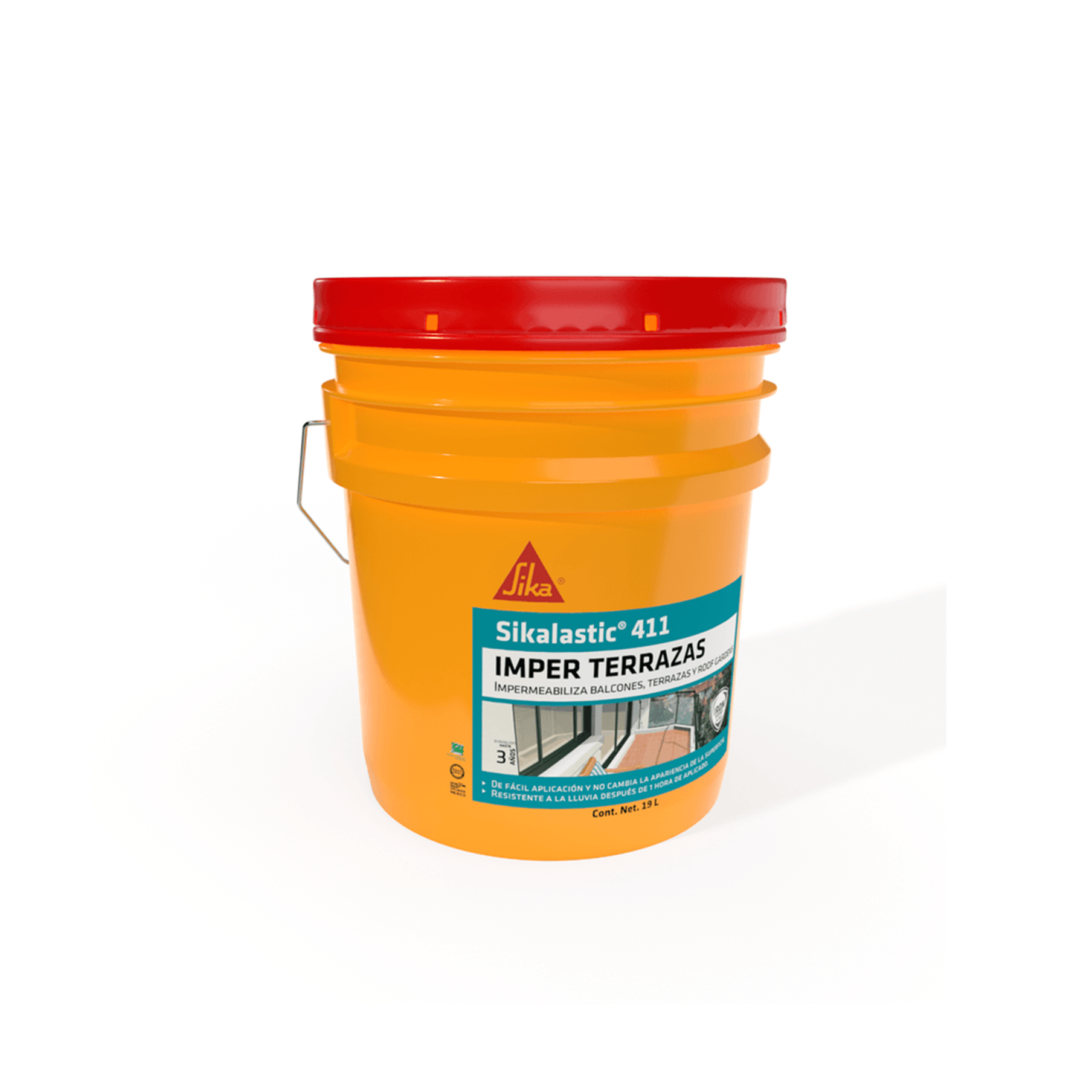 Impermeabilizante Acrílico Elástico Líquido Para Juntas Y Boquillas Sikalastic-411 MX Imper Terrazas, Cubeta 19 L