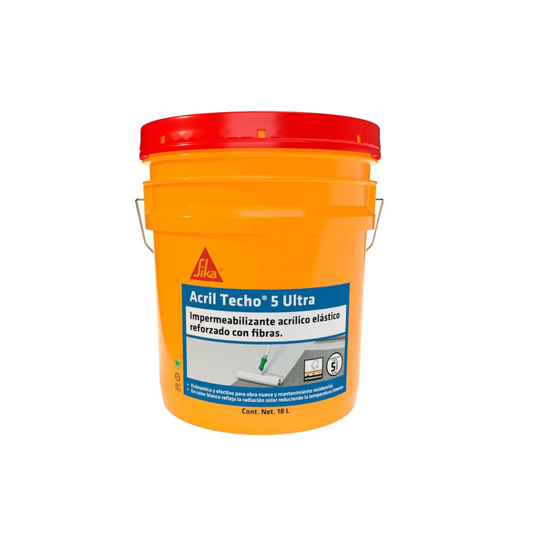 Impermeabilizante Acrílico Elástico Y Aislante Acril Techo 5 Ultra, Blanco, Cubeta 18 L