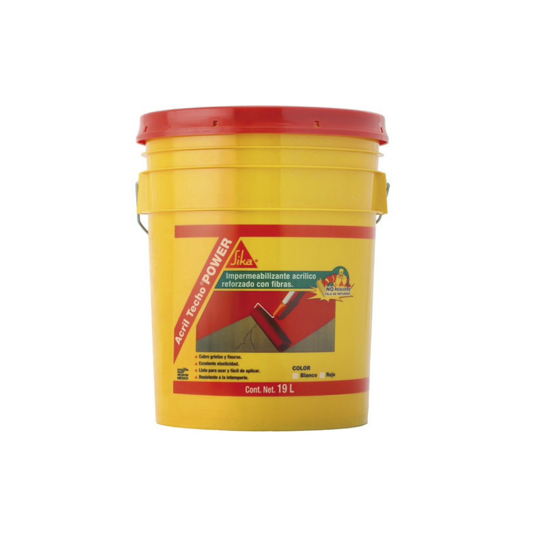 Sika® Acril Techo® Power 6 años es recubrimiento elástico impermeable con base en resinas acrílicas, para la impermeabilización flexible de cubiertas y terrazas. Este producto es una nueva fórmula mejorada con fibras, que le permite puentear mejor las fisuras del sustrato.