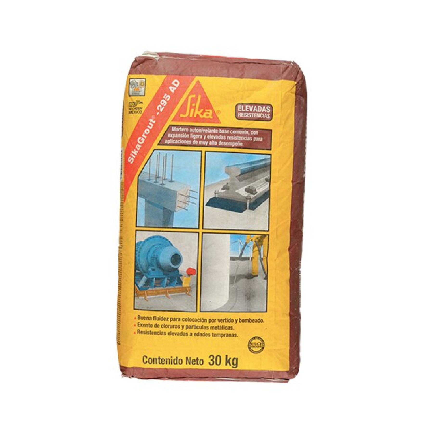 SikaGrout®-295 AD es un mortero listo para usar, de altas prestaciones y resistencias, con capacidad de prepararse con alta fluidez ( auto nivelante ), compuesto de una combinación de cementantes, agregados de granulometría controlada, aditivos fluidificantes y reductores de agua de alto rango adecuadamente dosificados para controlar los cambios de volumen. Cumple con los estándares CRD C621 y ASTM C1107.